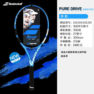 百宝力Babolat网球拍 2018款PD标准版 穆古拉扎 Pure Drive Blue (101335)300g/100拍面