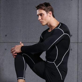 范斯蒂克 男款紧身衣运动弹力透气健身服训练跑步T恤篮球服 黑色拼灰线长袖 MBF75202