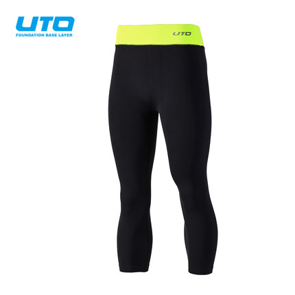 UTO悠途 女款弹力跑步七分裤运动健身紧身裤 荧光绿967205