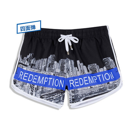 佑游 女款沙滩裤 女士宽松休闲短裤 速干可下水 线条城市 黑蓝 四面弹 女款