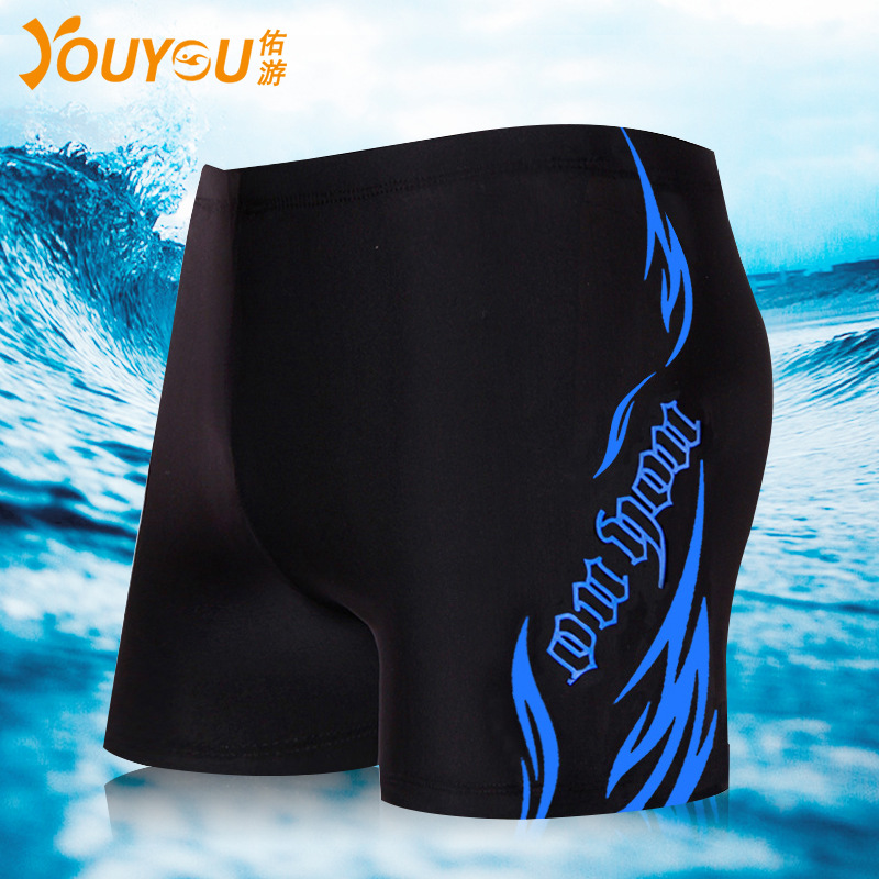 佑游 男士泳裤 黑底蓝火 泳裤 男
