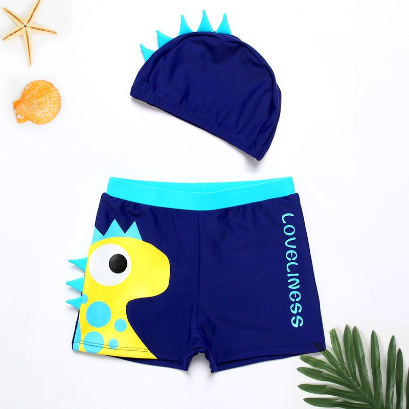 佑游 5801 男童泳裤平角游泳衣蓝色恐龙带帽子